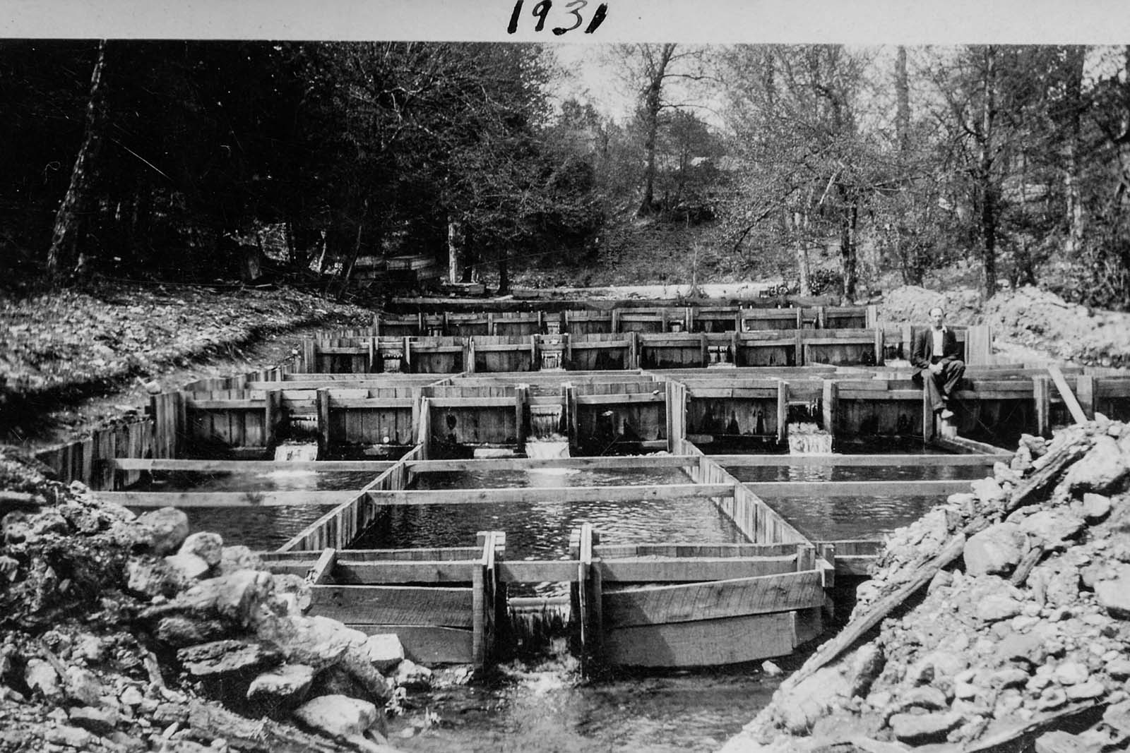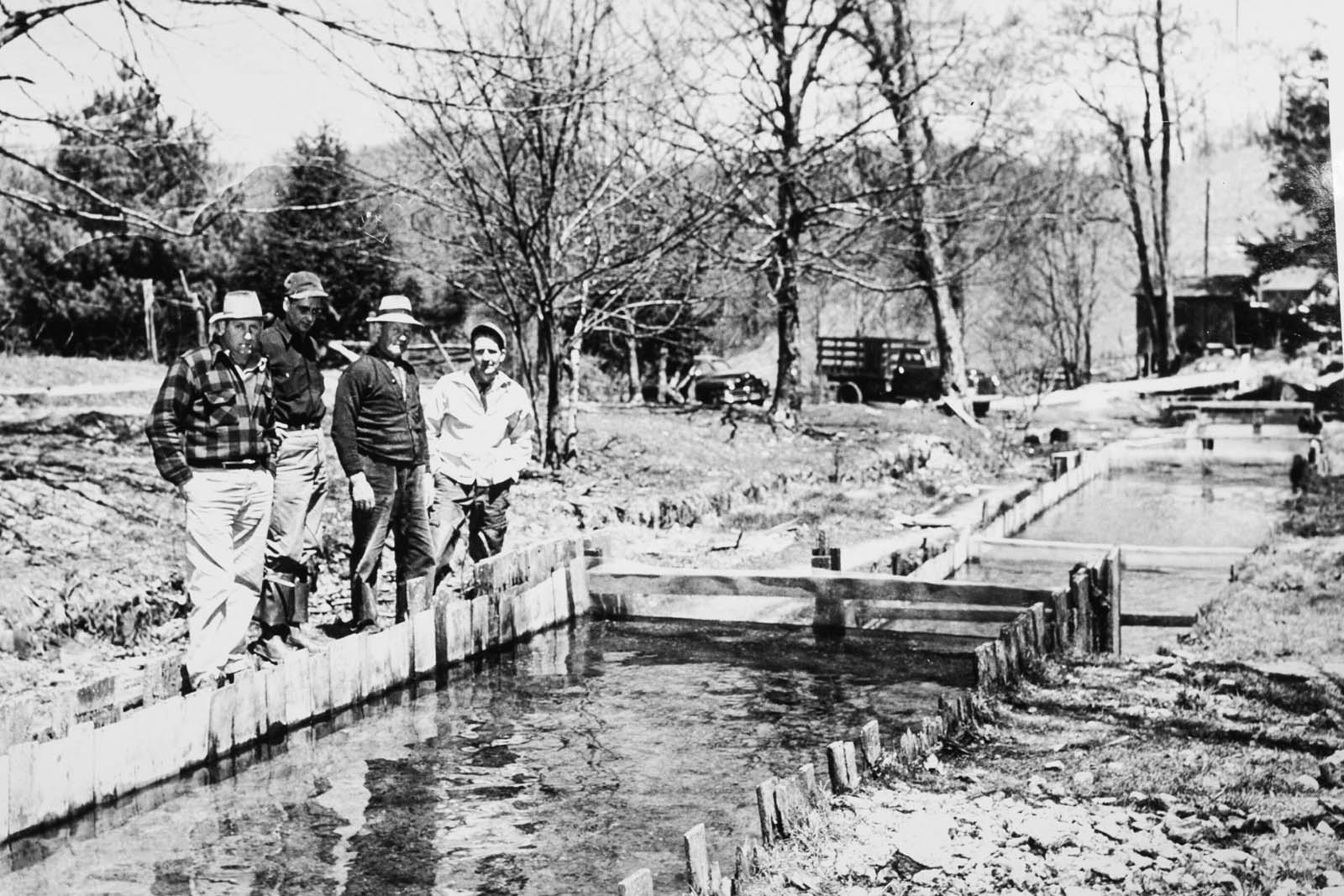 የሞንቴቤሎ የዓሣ ማጥመጃ ቦታ በጸደይ ወቅት የሚቀርብ ሲሆን፣ ከመጠን በላይ ውሃ በሚያስፈልግበት ጊዜ ከፋብሪካው በታች ካለው ጅረት የሚወጣ ፓምፕ የማድረግ ችሎታ አለው። የመጀመሪያው ተቋም የእንጨት (በአብዛኛው የአሜሪካ የደረት ፍሬ) ጎኖችና ጫፎች ያሏቸው የሸክላ መሮጫ መንገዶች ነበሩት። በኋላ፣ በ 1950መጀመሪያ ላይ፣ የሸክላ እና የእንጨት የእሽቅድምድም መንገዶች በአንድ ረድፍ በተደረደሩ የኮንክሪት የእሽቅድምድም መንገዶች ተተኩ። ይህ ዲዛይን ለመስራት አነስተኛ ውሃ ይፈልጋል።